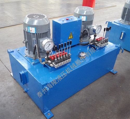 我公司生產(chǎn)的中壓泵站采用符合液壓系統(tǒng)要求的液壓油作介質(zhì),由電機(jī)經(jīng)泵柱塞泵送出符合要求流量與壓力,供液壓系統(tǒng)使用。主要由三相電機(jī)、變量柱塞泵、三聯(lián)多路手動(dòng)換向閥、內(nèi)置式溢流閥、油箱、等部件組成,具有調(diào)壓、過(guò)載保護(hù)等功能,為設(shè)備提供液壓動(dòng)力源。